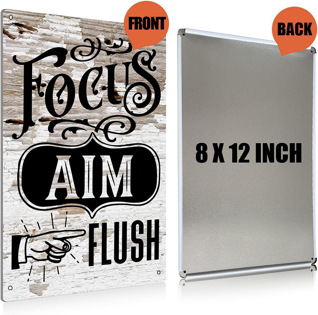 Funny Focus Aim Flush Bathroom Metal Tin Sign Wall Decor - Vintage Bathroom Quote Tin Sign for Toilet Restroom Washroom Garage Home Decor Gifts